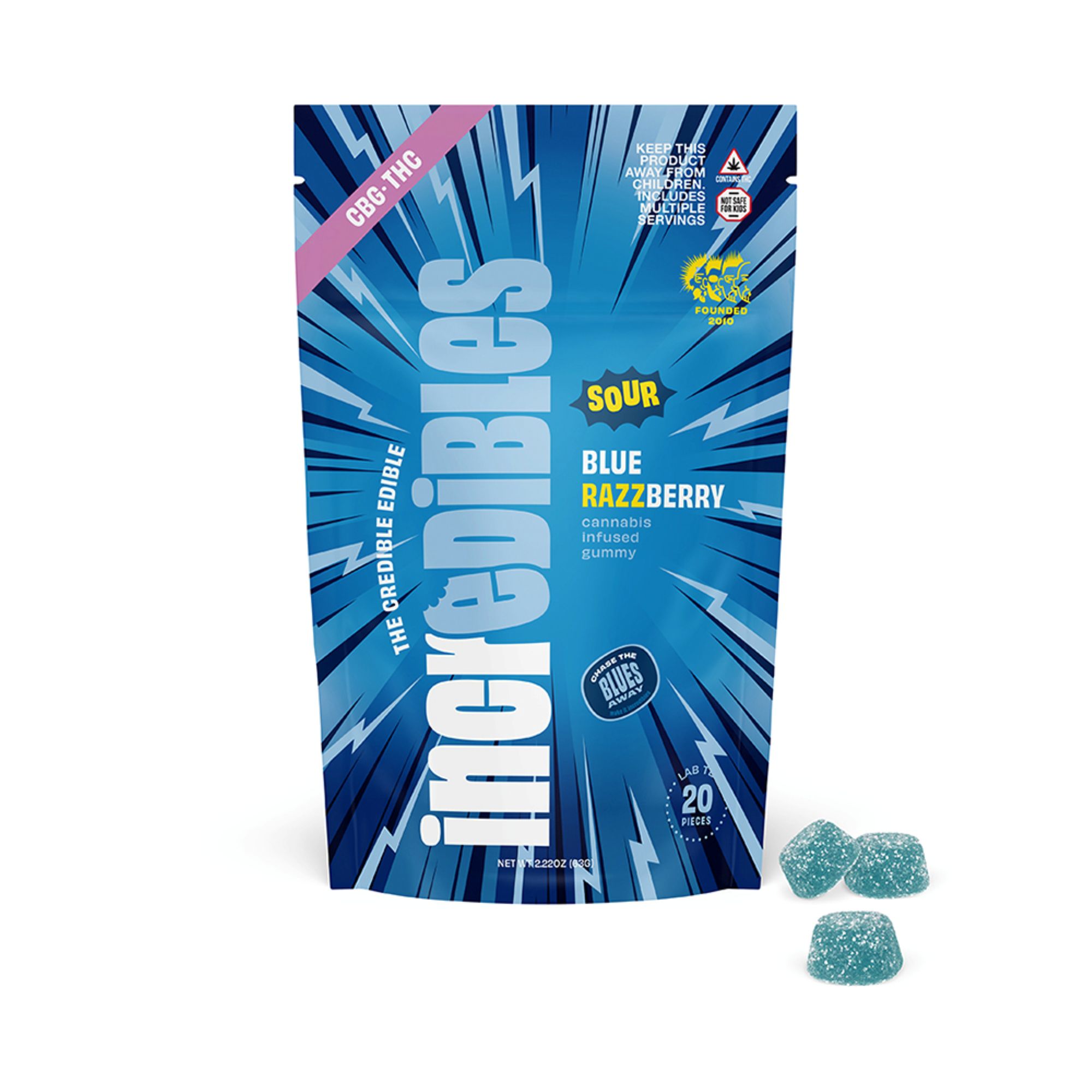 inc.edibles 20 Pack Sour Blue Razzberry THC/CBG Gummies 01015